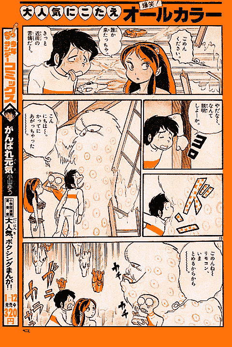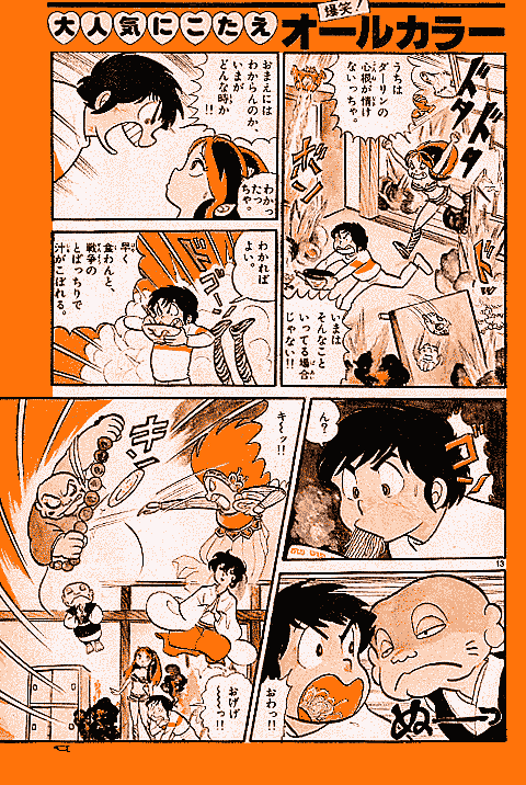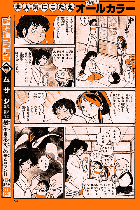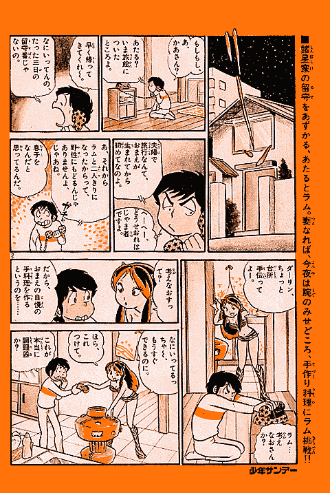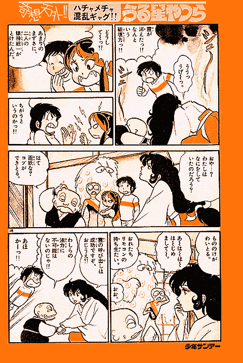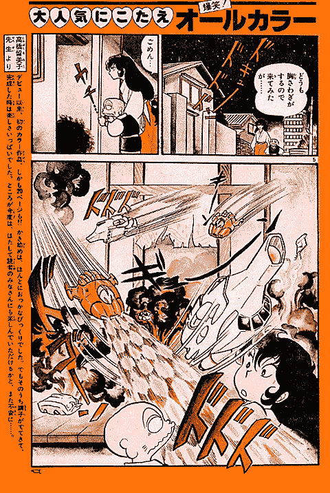 高橋留美子先生の初連載作品である『うる星やつら』は、少年サンデーでときどき読めるシリーズ連載としてスタートしました。しかし、当初から爆発的な人気をよび、1979年少年サンデー14号では、ついにオールカラー作品が掲載されたのです。ここでは、その貴重なカラー作品を、雑誌掲載時のままでご覧いただけます。