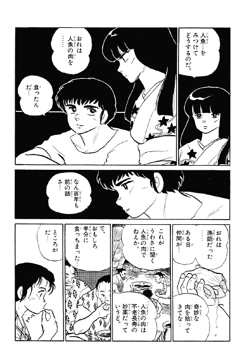「るーみっく・わーるど・スペシャル」として単行本化されている、高橋留美子先生の短編作品。「人魚シリーズ」と呼ばれる作品は、生と死を真っ向からとりあげるシリアスな内容です。初めてこのシリーズが増刊号に掲載された当時、週刊連載中の『うる星やつら』でコメディーアクションに親しんでいた読者の方に、衝撃ともいえる強烈な印象を与えました。そしてその反響はすさまじく、後に週刊本誌でも同シリーズを掲載することとなりました。そんな人魚シリーズの記念すべき第1話「人魚は笑わない」の前編をご紹介します。